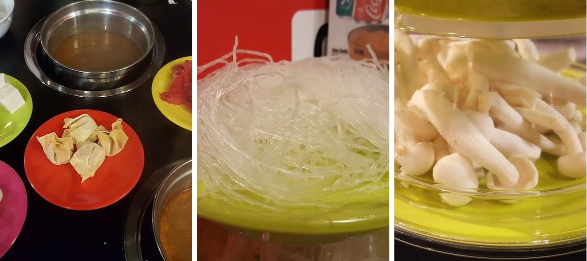 Plates like chicken skewers and Lao sausage travel past diners, allowing everyone to tailor their meal. Price-wise, it's an affordable option, with a total meal costing about half the price of similar offerings at competitors like Happy Lamb. The menu also includes sweet delights such as seasonal Sweet Mango Sticky Rice and Chilled Mix Fruit Jelly Soup for only $4.79.